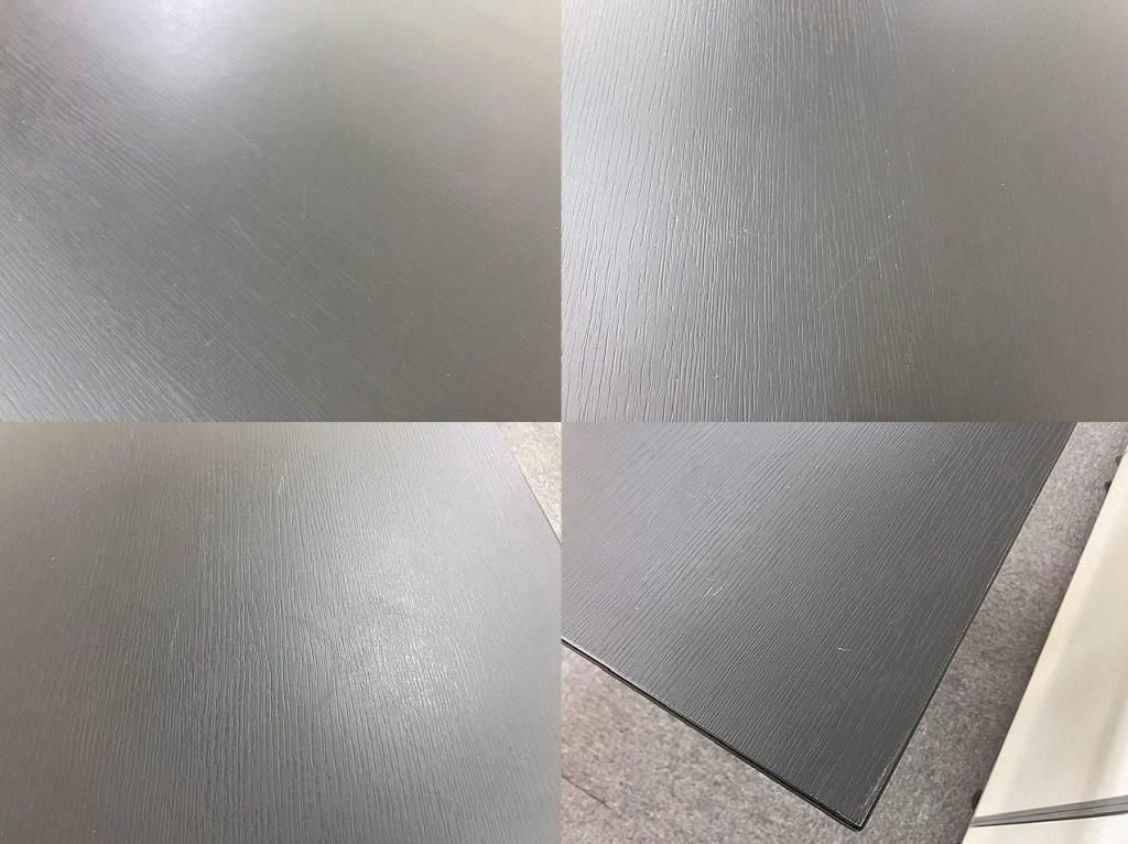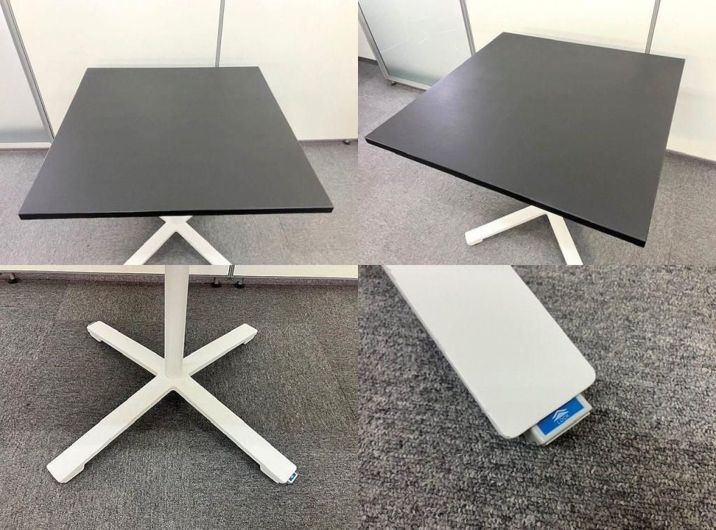 コクヨ製 DAYS(デイズ) W800角テーブル キャスター脚 天板:メラミン化粧板 エッジ:樹脂押出材 脚:スチール丸パイプ、粉体塗装、薄型キャスター 天板カラー:グレインドブラック 脚カラー:ホワイト ◆商談用やワークテーブルとしていかがでしょうか! ◆休憩室やカフェスペース用のテーブルとしておすすめです。 ※脚部に少々スレ・小傷・塗装剥がれあります (画像参照) XY-TFT88