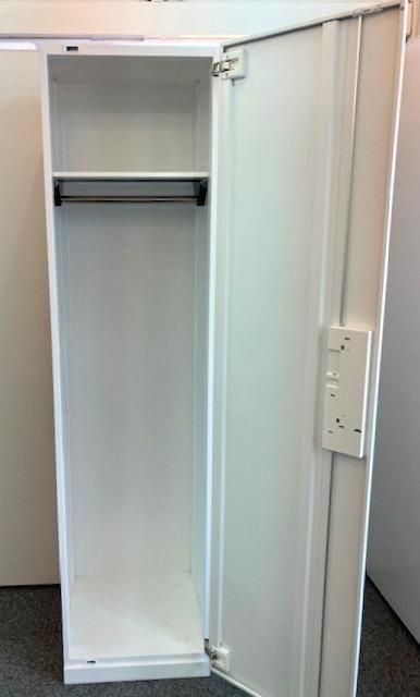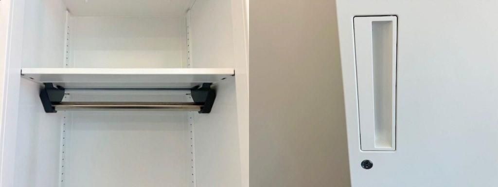 コクヨ製 エディア 1人用ロッカータイプ 本体・扉・棚板:スチール、焼付き塗装 引手:樹脂 カラー:ホワイト ◆鍵1本付き ◆ハンガーパイプ付き ◆棚板高さ変更可能 ベーシックな更衣ロッカーの奥行(515mm)に比べて、 ややスリムなサイズです!奥行き⇒450mm 通路幅広く確保したい方などおすすめです*