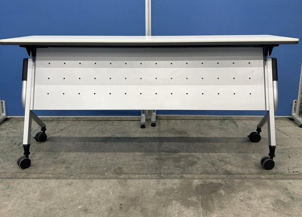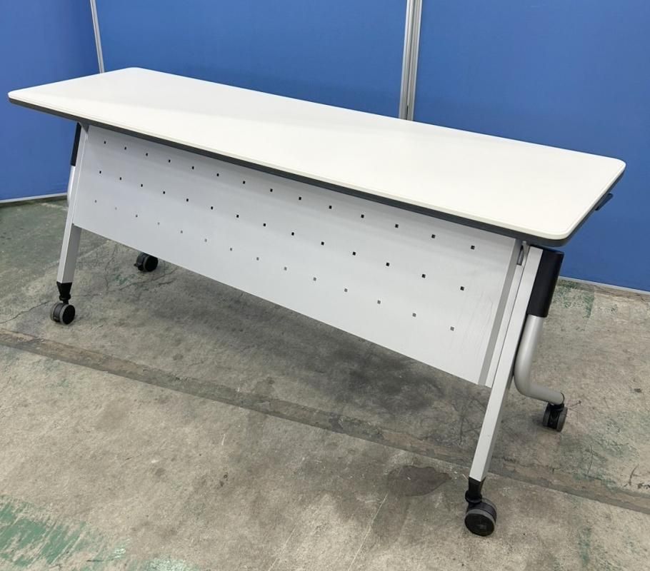 プラス製 リネロ2 W1500スタックテーブル 幕板付き <中棚無し> 天板:表面/メラミン化粧板 エッジ/樹脂 脚:スチールパイプ焼付き塗装 キャスター:ナイロン双輪キャスター 天板カラー:ホワイト 脚カラー:シルバー ◆脚部ストッパー付き ◆ミーティングやセミナー等のテーブルなどにいかがでしょうか。 幕板付きなので足元を気にせず、対面でのご使用にもおすすめです。 LD-515