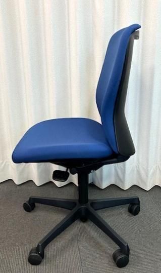 オカムラ製 スラートチェア ハイバック 背、座シェル:樹脂 支基:スチール 脚:樹脂 布地カラー:ミディアムブルーフレームカラー:ブラック ◆ガス上下調節 ◆リクライニングの角度調節 ◆リクライニングの強弱調節 ◆異硬度クッション 硬さの異なる3種類のウレタンを一体で成型。座面の前方は太ももを圧迫しないように柔らかく、 後方にはおしりをしっかりサポートする硬いクッションを採用。 ◆アンクルチルトリクライニング くるぶしを中心として座と座がシンクロしてスライドし、自然な動きをサポート。 20°の広範囲リクライニングと、任意位置での固定ができます。 C335ZR-FSF3